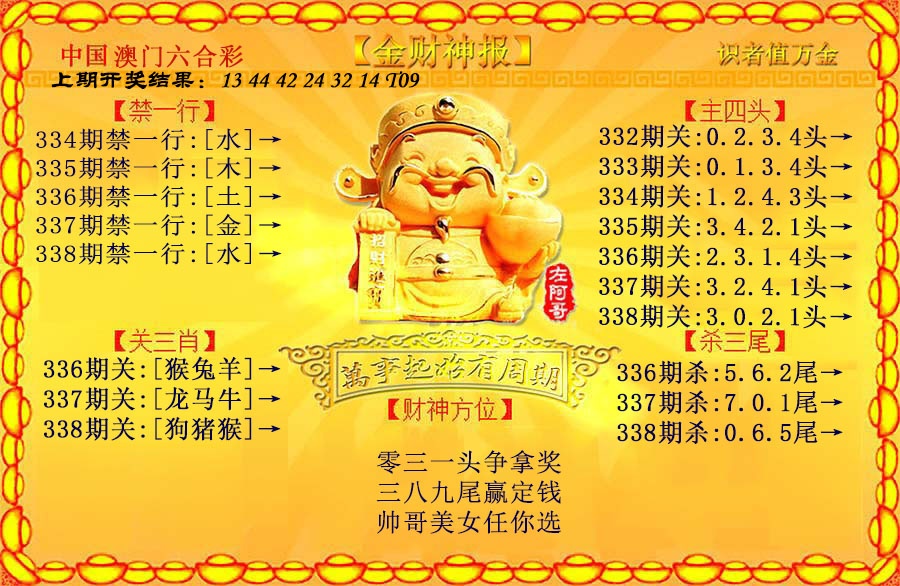 338期: 澳门六合宝典彩圖信封【黄财神报】每期自动更新