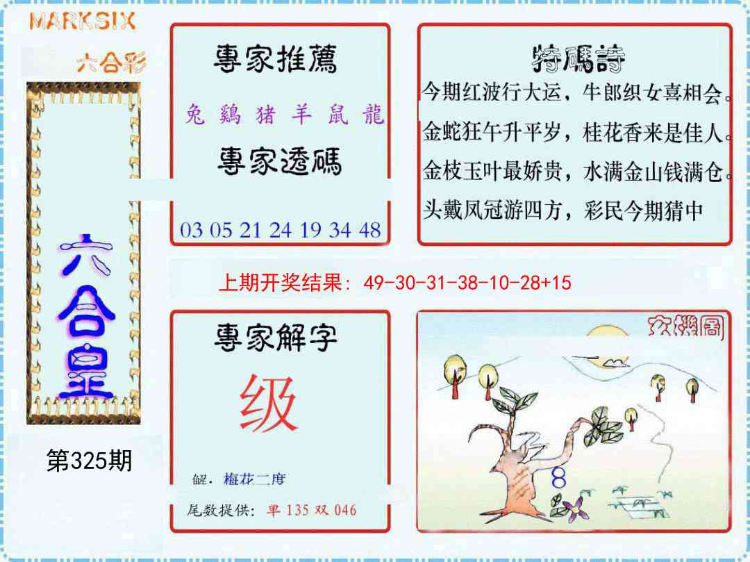 325期: 澳门六合宝典彩圖信封【天龙爆料】每期自动更新