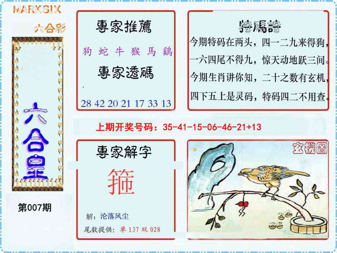 007期: 澳门六合宝典彩圖信封【特码诗句】每期自动更新
