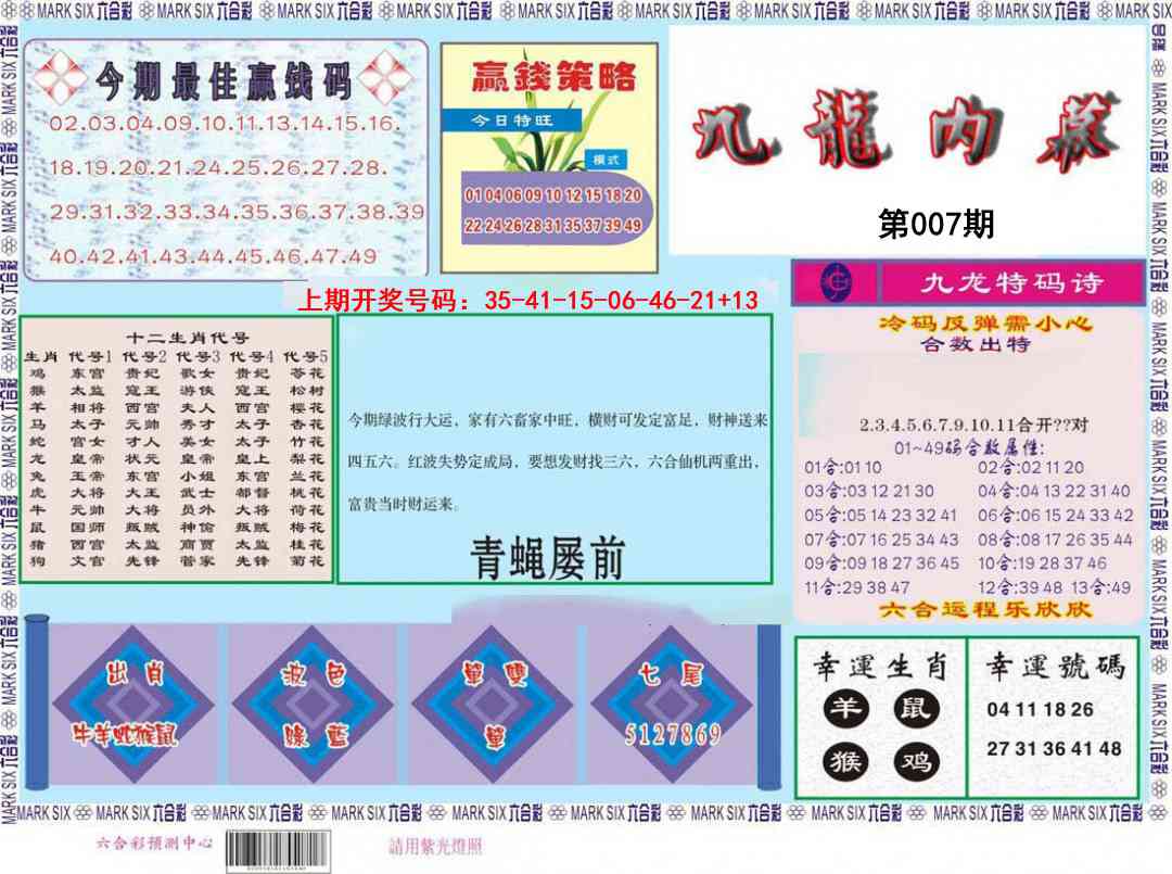 007期: 澳门六合宝典彩圖信封【九龙内幕】每期自动更新